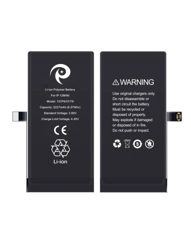 Restore your iPhone 12 Mini's battery life with our OEM quality replacement battery, offering the original capacity for sustained usage. 1-year product warranty. The battery capacity is 2227mAh. The warranty does not cover man-made damage or wear and tear. Can be used with model A2399.