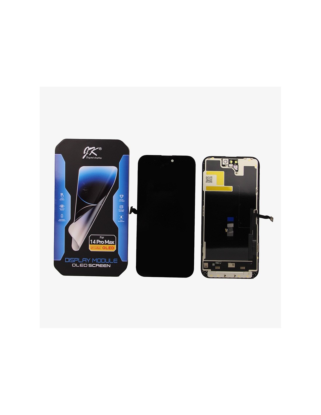 This is our best copy screen for iPhone 14 Pro Max. It is made by the renowned JK Factory. It matches the same build as a full original iPhone 14 Pro Max Screen. It gives the best quality colors and perfect touch. Can be used with model 2894.