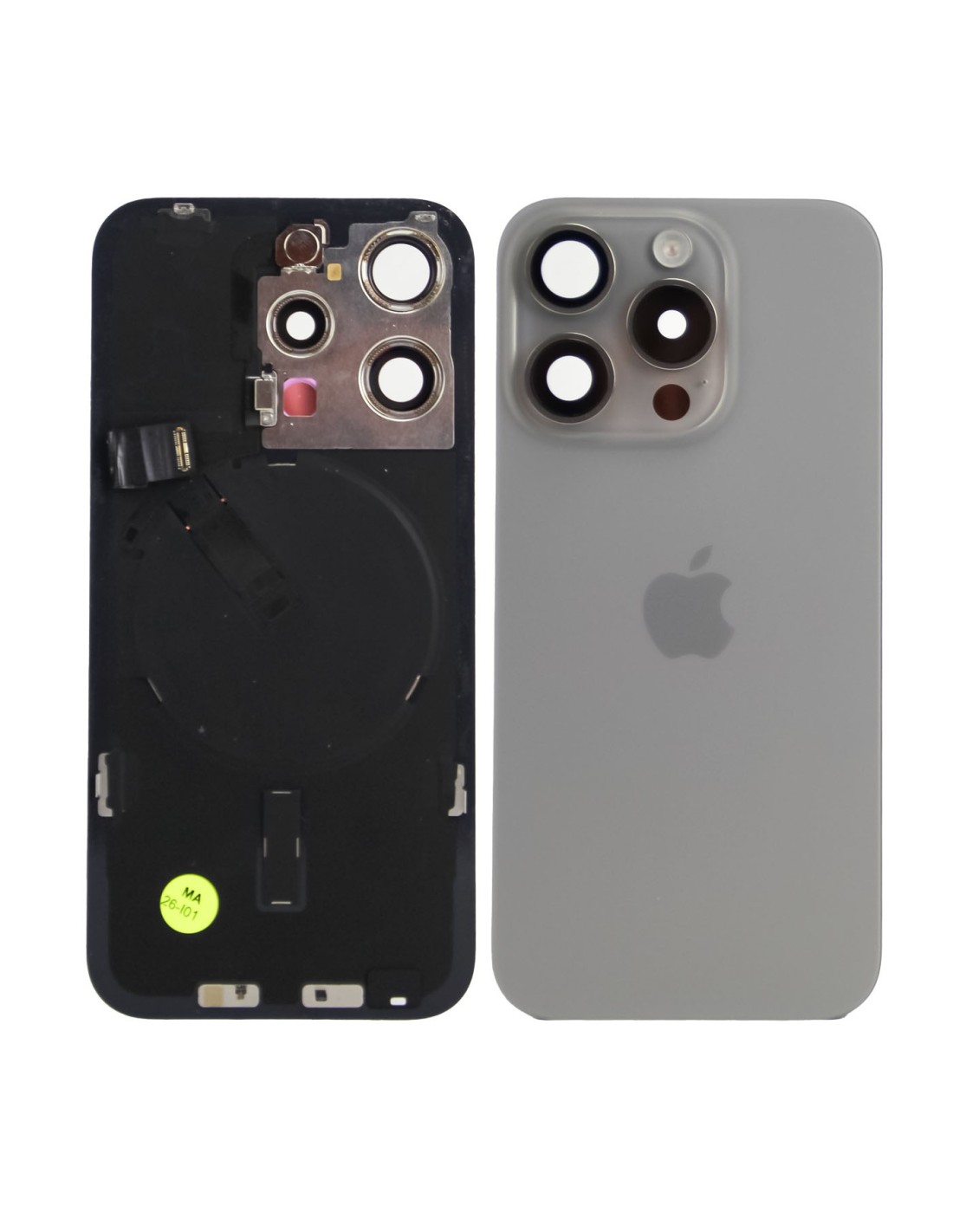 A Pulled Original back glass for iPhone 15 Pro, complete with all integrated components needed for a smooth and dependable repair.